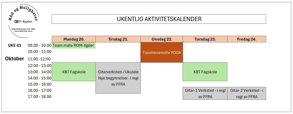 Dette skjer i uke 43. Her får du en liten smakebit på aktivitetene som starter neste uke Vil du vite mer eller bli med? Sjekk: https://www.rom-agder.no/aktiviteter/ (Feed generated with FetchRSS)